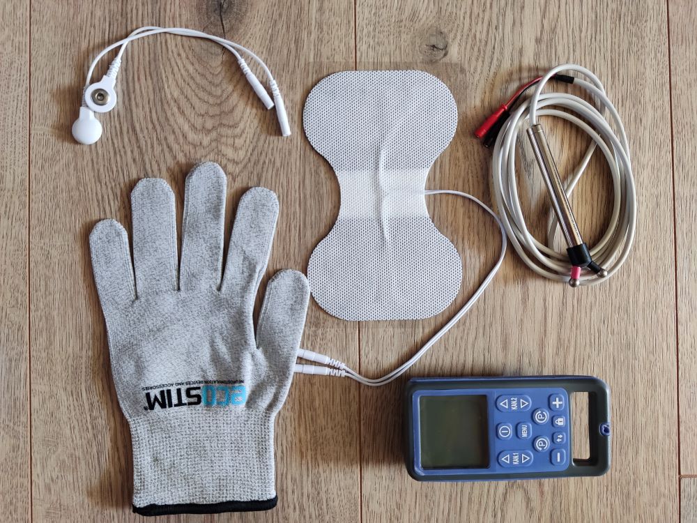 Terapię prowadzimy elektrostymulatorem TENS/EMS ECO54